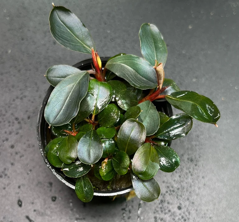 小型水槽でも使いやすく、密に植えることで可愛らしい水景を作り出せるのが魅力です。葉の色は茶色から青みがかった緑色まで変化し、光の当たり方によって表情が変わります。育成は容易で、初心者にも扱いやすい品種です。弱い光量で育ち、CO2添加も必須ではありません。小型のため、前景草としても中景のアクセントとしても活用できます。価格は中程度で、入手もしやすい部類に入ります。成長速度は遅く、レイアウトが崩れにくいのも利点です。