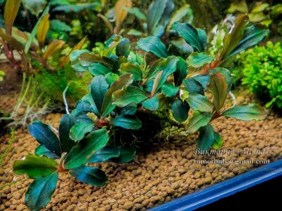 育成は比較的容易ですが、流通量が少なく価格は高めに設定されています。弱い光量で育ち、CO2添加なしでも問題なく成長します。葉のサイズは小型のため、前景草としても中景のアクセントとしても活用できます。褐色の葉は他の明るい色のブセと組み合わせることで、美しいコントラストを生み出します。成長速度は遅く、レイアウトが崩れにくいのも利点です。