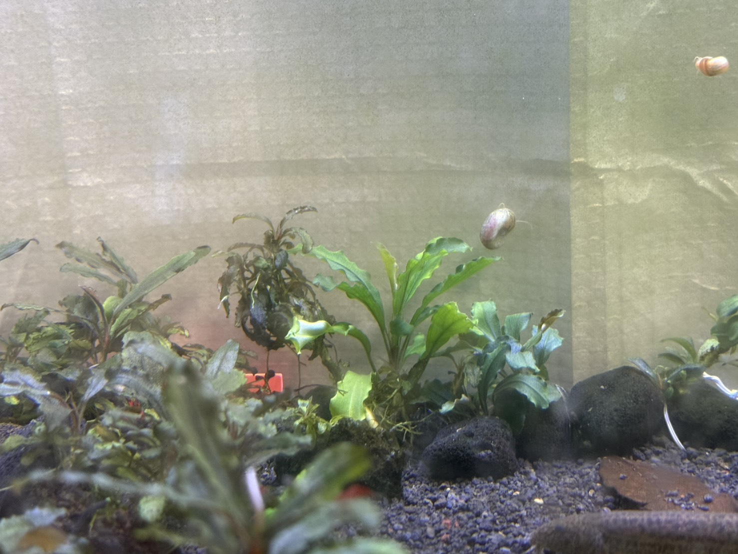 上記の画像は私がブセを育てている60センチ水槽の画像です(コケが生えていてすみません笑)。クダガンやブラウニーゴースト、グリーンベルベットが入っています。ちなみにほとんどがクダガンで水槽の半分ぐらいを埋め尽くしています。