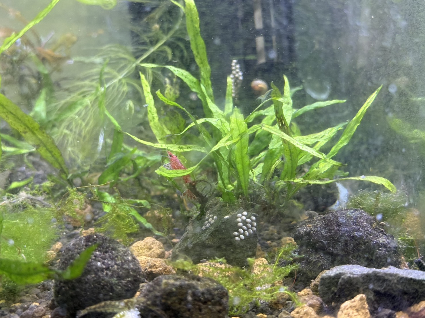 コケ取り生体としてヤマトヌマエビやオトシンクルスを導入すると、葉に付着したコケを食べてくれるため効果的です。
