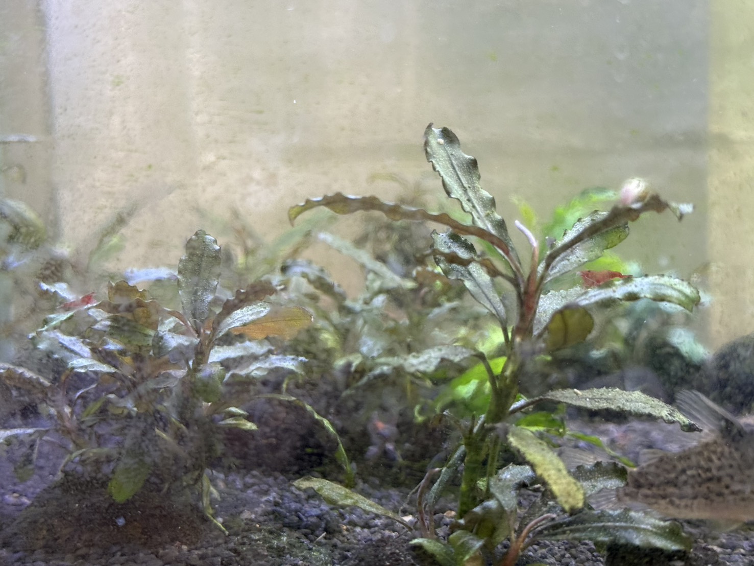 光量は中国製のLEDライトでとても弱いです。二酸化炭素はなしですが外部フィルターを使っているためphは中性から弱酸性だと思います。この環境でブセはぐんぐん育っています。毎日のように新芽を伸ばしています。